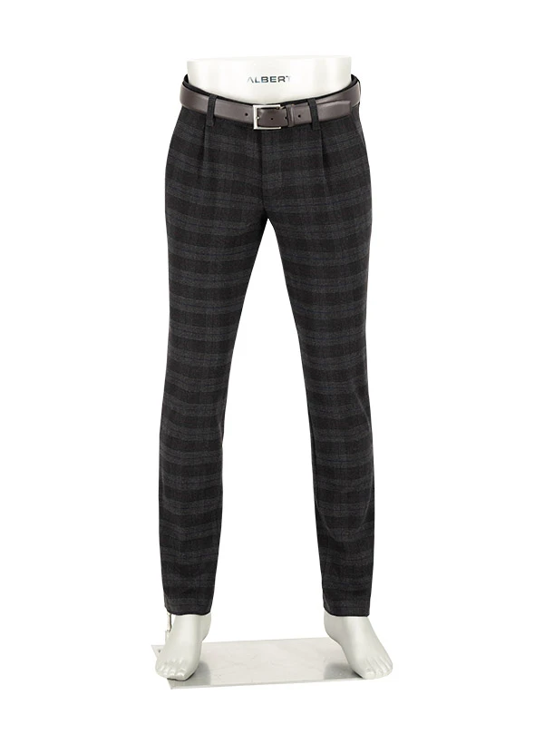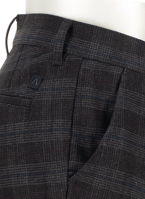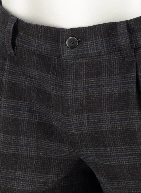 Fuchsia-anthrazit karierte Bundfaltenhose in weicher Flanellqualität
