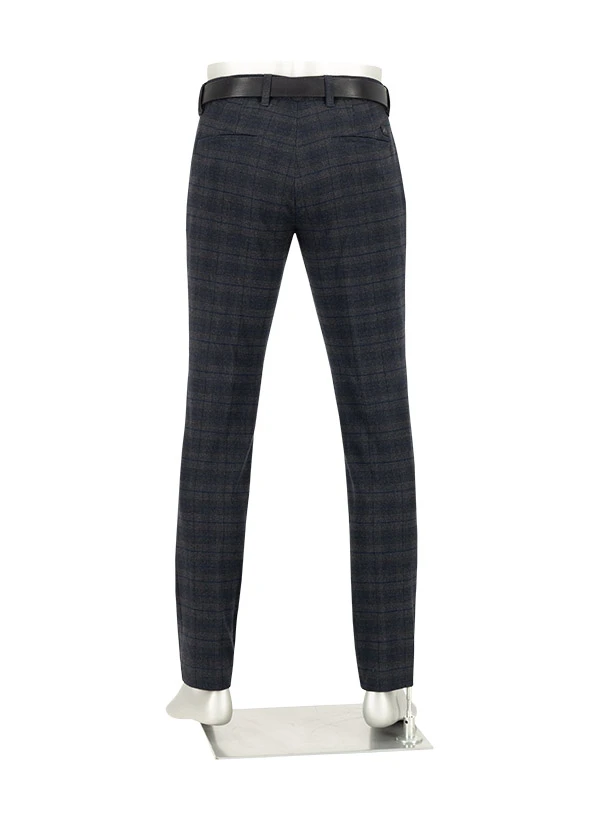Das dezente Karomuster in Nachtblau und Anthrazit verleiht dieser Bundfaltenhose zeitlose Eleganz mit britischem Einschlag. Der weiche Flanellstoff aus recyceltem Polyester und Viskose fühlt sich warm an und bietet dank Elasthan-Anteil angenehme Bewegungsfreiheit. Die klassische Bundfalte und der Regular Fit schaffen eine souveräne Silhouette für Business und gehobene Anlässe. Seitliche Einschubtaschen und Gesäßtaschen runden die durchdachte Ausstattung ab.