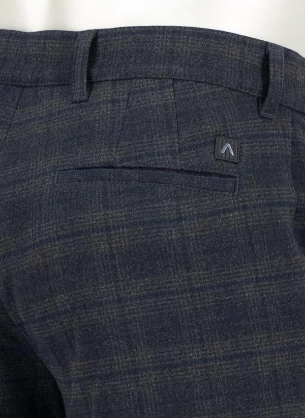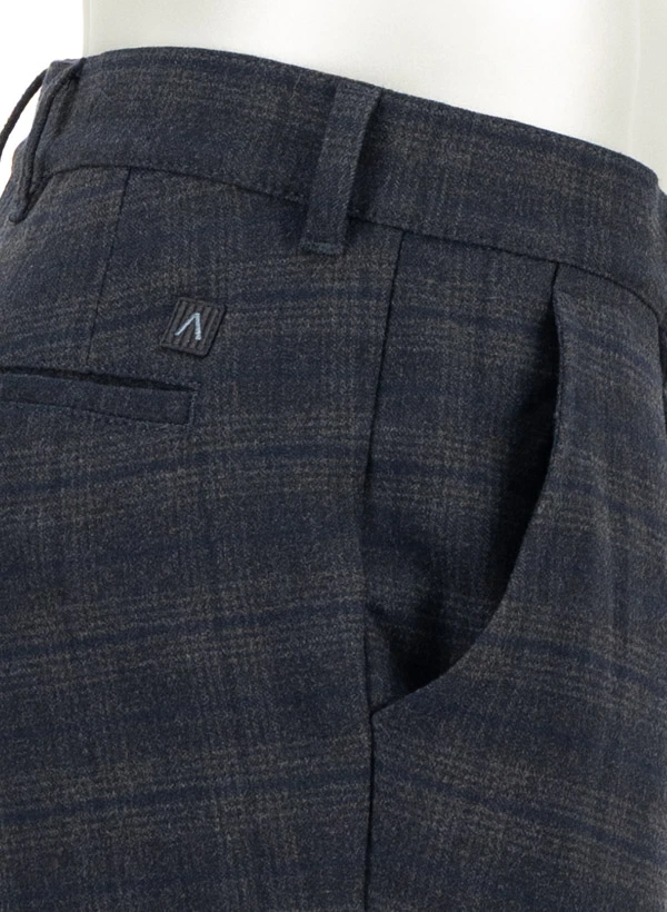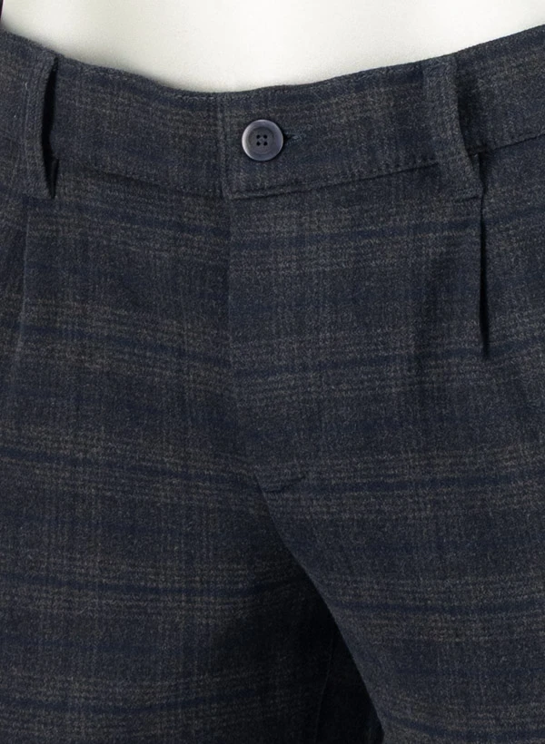 Nachtblau-anthrazit karierte Flanellhose mit klassischen Bundfalten