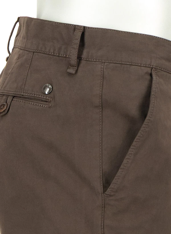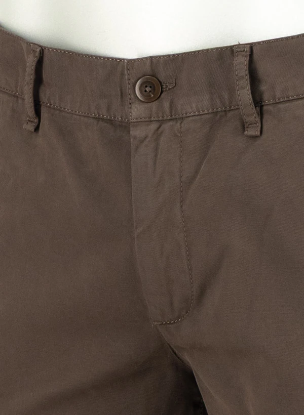 Das satte Dunkelbraun dieser Chino verleiht jedem Outfit eine warme, erdige Note und harmoniert besonders gut mit herbstlichen Farbtönen. Der hochwertige Baumwoll-Twill mit dezenter Elasthan-Beimischung sorgt für angenehme Bewegungsfreiheit und behält dabei seine strukturierte Form. Die klassische Chino-Silhouette mit seitlichen Eingrifftaschen und geknöpften Gesäßtaschen macht sie zum vielseitigen Begleiter für Business-Casual und entspannte Wochenenden. Die Regular Fit Passform sitzt komfortabel ohne aufzutragen, während die Fußweite von 34 cm für einen zeitgemäß schlanken Abschluss sorgt.