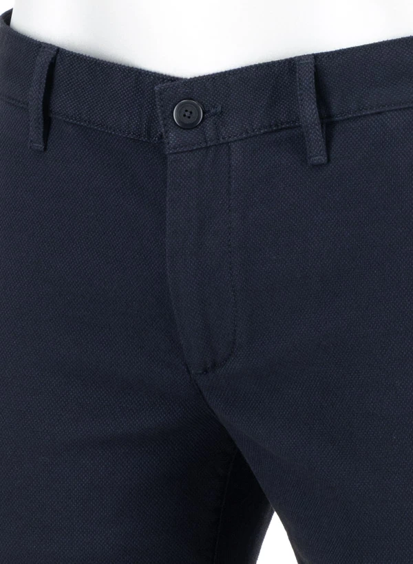 Die navy melierte Oberfl?che zeigt sich in einer raffinierten Two-Tone-Optik, die der Chino eine edle Tiefe verleiht. Der Baumwollmix mit Viskose und einem Hauch Elasthan f?hlt sich geschmeidig an und passt sich jeder Bewegung flexibel an ? ideal f?r lange Tage im B?ro oder unterwegs. Mit ihrer Regular Fit Passform und dem New Wool Look bringt die Lou zeitgem??e Eleganz in jeden Business-Casual-Look. Die seitlichen Eingrifftaschen und gekn?pften Ges??taschen unterstreichen den klassischen Chino-Charakter.