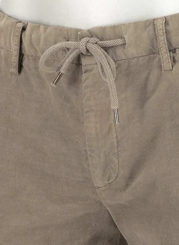 Das warme Greige dieser Baby-Cord-Hose zeigt sich in feinen, eng gesetzten Rippen, die dem Stoff seine charakteristische Textur verleihen. Der weiche Baumwoll-Mix mit 3% Elasthan schmiegt sich angenehm an und bietet durch die feine Cord-Struktur eine samtige Haptik bei gleichzeitig hoher Bewegungsfreiheit. Die schmale Silhouette wirkt modern und lässig – ideal für urbane Herbsttage oder entspannte Business-Casual-Anlässe. Der elastische Bund mit Kordelzug ermöglicht flexibles Tragen innen wie außen, während die aufgesetzten Gesäßtaschen für klassische Details sorgen.