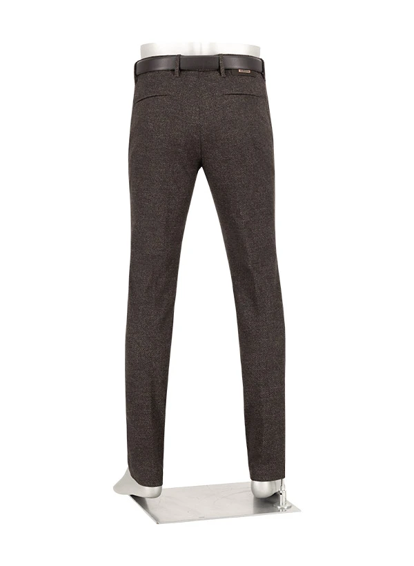 Das mokka-salbei-beige Muster verleiht der Rob einen dezenten, aber markanten Look mit natürlicher Eleganz. Der geschmeidige Jersey aus Polyester-Viskose-Mix schmiegt sich weich an die Haut und bietet durch den Elasthan-Anteil optimale Bewegungsfreiheit für den ganzen Tag. Die Slim-Fit-Passform sitzt körpernah ohne einzuengen und macht die Hose zum vielseitigen Begleiter zwischen Business-Casual und entspanntem Freizeitlook. Seitliche Einschubtaschen und geknöpfte Gesäßtaschen runden das durchdachte Design funktional ab.