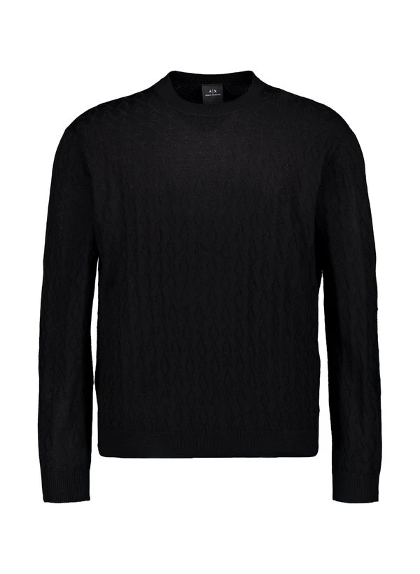 Schwarzer Wollpullover mit feinem Rautenjacquard