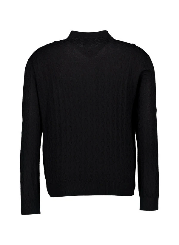 Das dezente Rautenmuster im Jacquard-Strick verleiht dem schwarzen Pullover eine subtile Textur, die erst bei näherem Hinsehen ihre volle Wirkung entfaltet. Die hochwertige Woll-Acryl-Mischung fühlt sich weich an und reguliert die Körpertemperatur – ideal für kühlere Tage ohne zu beschweren. Der klassische Rundausschnitt und die legere Passform machen ihn zum vielseitigen Begleiter für Business-Casual oder entspannte Abende. Die strukturierte Strickoptik unterstreicht die handwerkliche Qualität, während die Rückenlänge von 66 cm (Größe M) für eine moderne, nicht zu lange Silhouette sorgt.