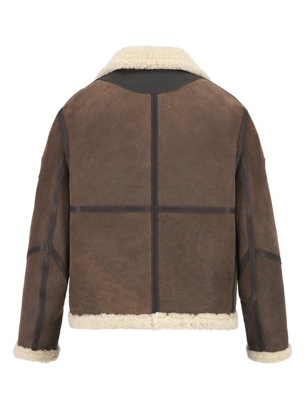 Das polierte Lammfell zeigt sich in einem warmen, natürlichen Braunton mit authentischer Vintage-Patina. Die butterweiche Textur des Lammleders schmiegt sich angenehm an den Körper und entwickelt mit der Zeit eine individuelle Charakteristik. Gewachste Kalbslederbänder durchziehen die gesamte Jacke und verbinden robuste Funktionalität mit urbanem Stil. Der Umlegekragen mit variablem Riegel und die seitlichen Reißverschlusstaschen unterstreichen den klassischen Biker-Look.