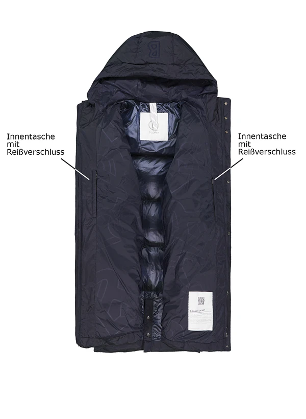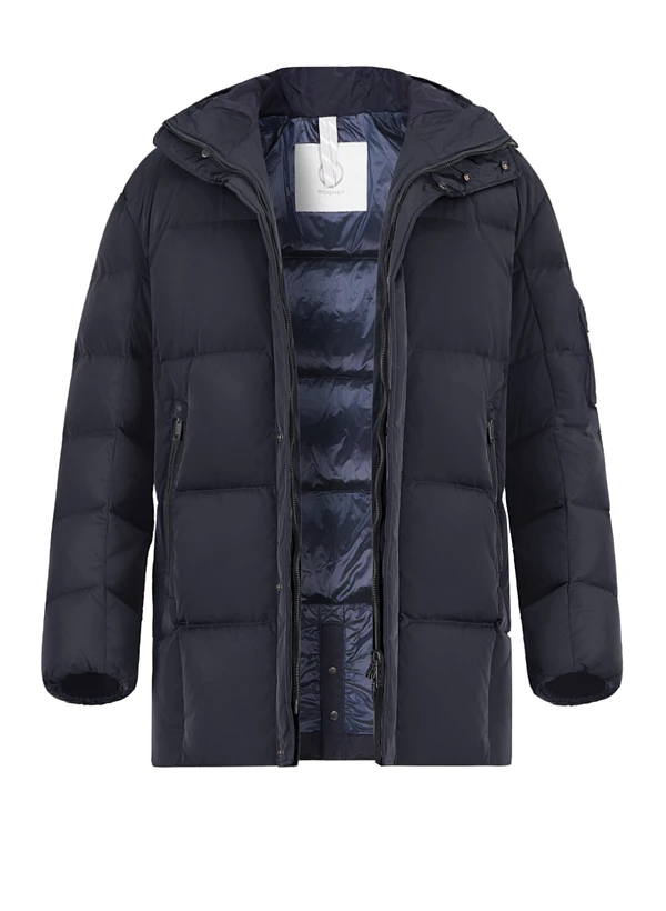 BOGNER überträgt seit 1932 olympische Performance-Standards in luxuriöse Alltagsmode – hier zeigt sich diese DNA in der Kombination aus nachhaltigen Materialien und alpiner Funktionalität. Die angeschnittene Kapuze und der Zwei-Wege-Reißverschluss mit Druckknopfblende machen den Mantel zum vielseitigen Begleiter für wechselhafte Wintertage.