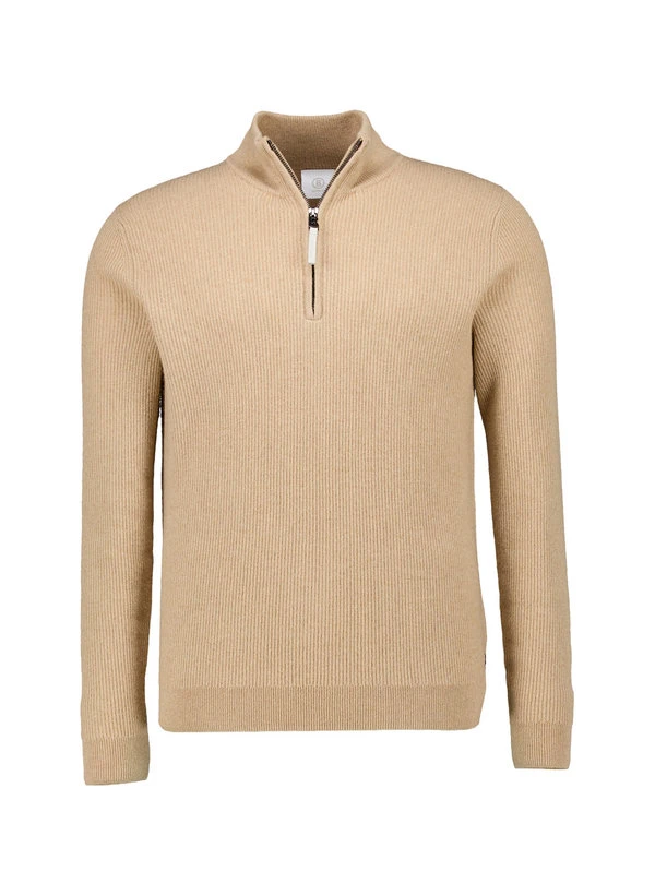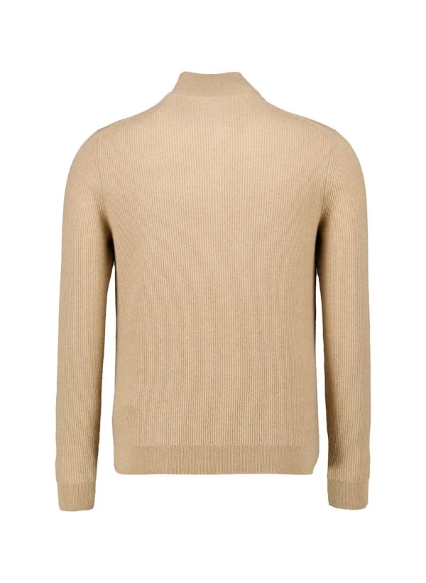 Der sandtonige Rippenstrick zeigt sich in einem warmen, neutralen Farbton, der durch die textile Struktur eine dezente Tiefe erhält. Das hochwertige Schurwoll-Kaschmir-Gemisch fühlt sich außergewöhnlich weich an und reguliert die Körpertemperatur auf natürliche Weise. Mit seinem cleanen Stehkragen und dem verdeckten Reißverschluss verkörpert der Troyer eine moderne, reduzierte Eleganz für Business-Casual und gehobene Freizeitanlässe. Die präzise gearbeiteten Rippenstrickbündchen an Ärmeln und Saum unterstreichen die hochwertige Verarbeitung.