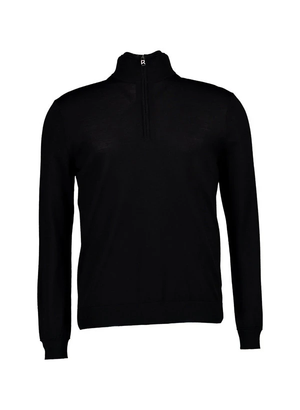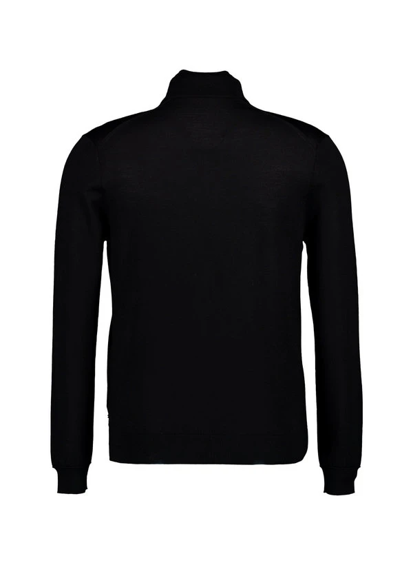 Der schwarze Feinstrick zeigt sich in puristischer Eleganz mit Stehkragen und verdecktem Reißverschluss. Die reine Schurwolle wärmt zuverlässig, reguliert die Temperatur natürlich und fühlt sich dabei weich und kratzfrei an. Für Business-Casual-Looks unter dem Sakko oder solo als stilvoller Begleiter durch die kalte Jahreszeit. Rippenstrickbündchen an Ärmeln und Saum sorgen für perfekten Sitz und unterstreichen die klare Linienführung.
