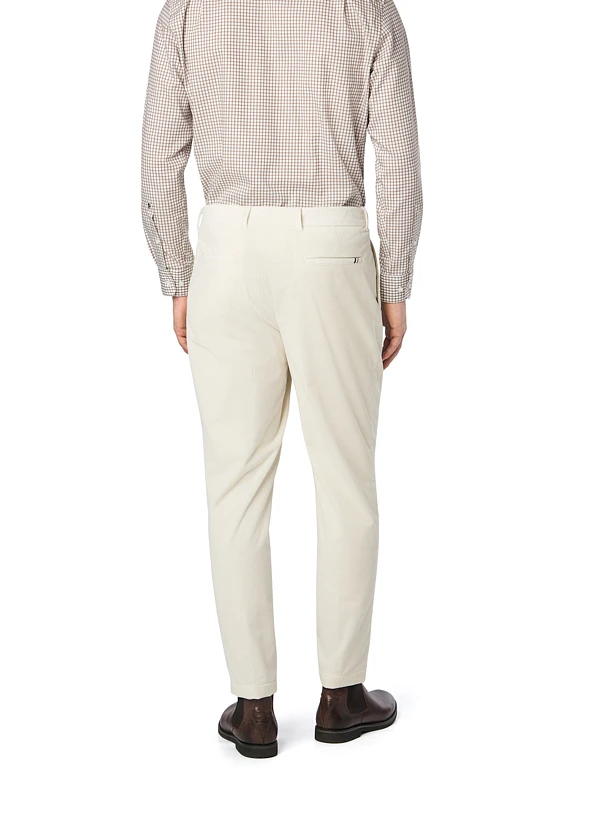 Die markanten Bundfalten und der konische Beinverlauf verleihen dieser Cordhose eine moderne, schlanke Silhouette. Das weiche Cord-Gewebe aus 98% Baumwolle mit einem Hauch Elasthan schmiegt sich angenehm an und bietet durch die natürliche Struktur optimalen Tragekomfort. Die elegante Schnittführung macht die Hose zum idealen Begleiter für Business-Casual-Anlässe oder urbane Herbstlooks. Die seitlichen Eingrifftaschen und Gesäßtaschen unterstreichen die klassische Hosenarchitektur.