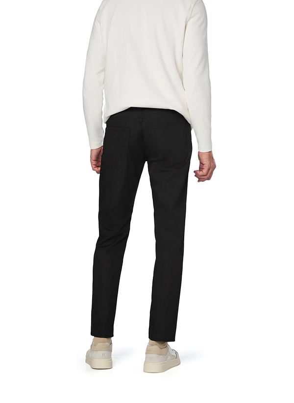 Die feine Melange-Struktur in tiefem Schwarz verleiht dieser Five-Pocket-Hose eine subtile Tiefenwirkung, die je nach Lichteinfall changiert. Der hochwertige Baumwoll-Stretch-Mix schmiegt sich angenehm an und bietet durch den Elasthan-Anteil optimale Bewegungsfreiheit für den ganzen Tag. Mit ihrer cleanen Optik und dem Regular Fit funktioniert die Maine sowohl zum Business-Casual-Look als auch zur entspannten Freizeitgarderobe. Die klassische Five-Pocket-Aufteilung und die schlanke Fußweite von 33 cm unterstreichen die moderne Silhouette.