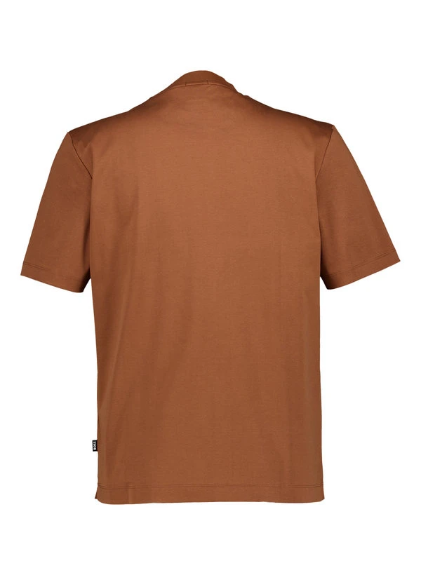 Das warme Braun dieses T-Shirts erhält durch die mercerisierte Baumwolle einen subtilen Glanz, der dem Casual-Piece eine luxuriöse Note verleiht. Der hochwertige Baumwoll-Jersey fühlt sich außergewöhnlich weich an und behält auch nach häufigem Waschen seine Form – ein Vorteil der speziellen Mercerisierung, die die Fasern veredelt und strapazierfähiger macht. Mit seinem klassischen Rundhalsausschnitt und den dezenten Seitenschlitzen passt das Shirt sowohl ins Büro als auch in die Freizeit. Das verstärkende Band im Nacken sorgt für zusätzliche Stabilität und verhindert ein Ausleiern des Ausschnitts.