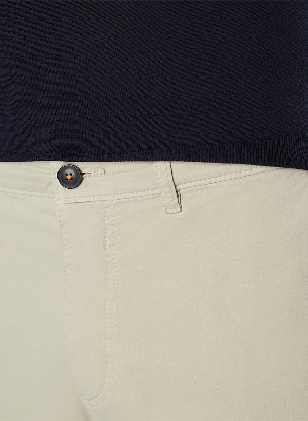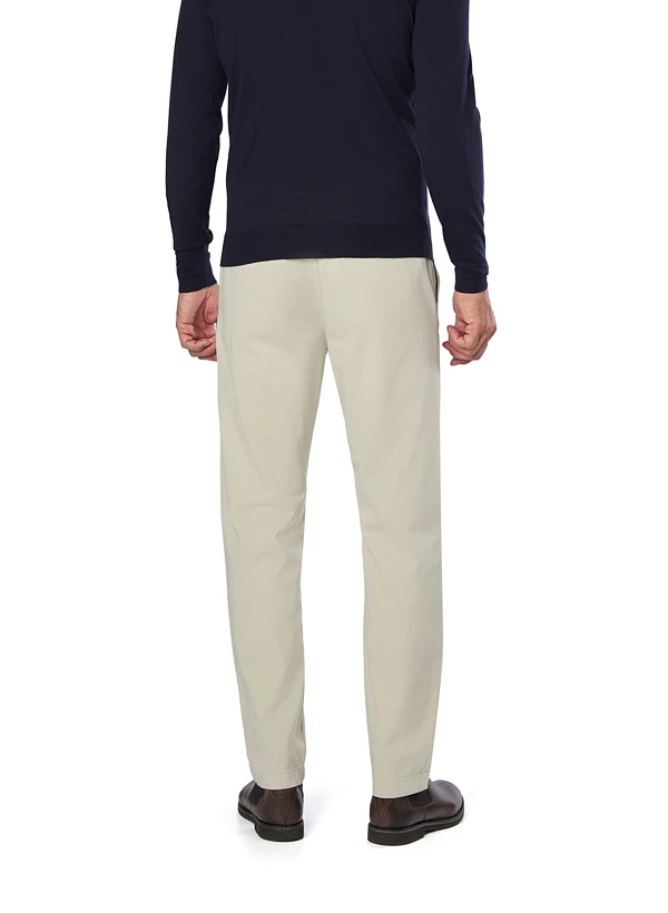 Die hellbeige Färbung verleiht dieser Chino zeitlose Eleganz, während die gepeachte Oberfläche für eine besonders weiche Haptik sorgt. Der Baumwoll-Stretch-Mix schmiegt sich angenehm an die Haut und bietet durch den Elasthan-Anteil optimale Bewegungsfreiheit im Alltag. Mit ihrem Regular Fit sitzt die Hose bequem ohne aufzutragen – ideal für entspannte Business-Casual-Looks oder legere Wochenend-Outfits. Seitliche Eingrifftaschen und klassische Gesäßtaschen runden das durchdachte Design ab.