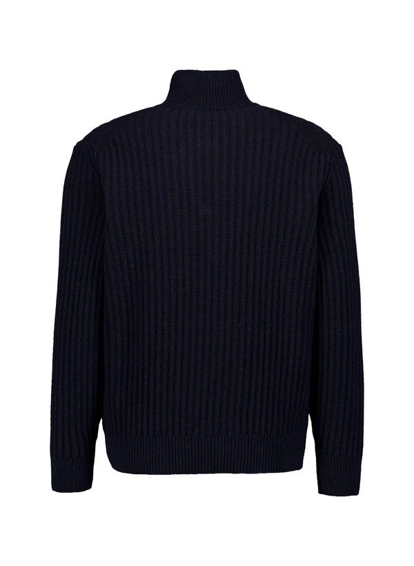 Der markante Stehkragen mit kurzem Reißverschluss definiert die klassische Troyer-Silhouette in zeitgemäßer Interpretation. Die hochwertige Schurwollmischung mit recyceltem Anteil fühlt sich warm und griffig an, während die Rippenstrick-Struktur für zusätzliche Elastizität und Formbeständigkeit sorgt. Als vielseitiger Layering-Partner funktioniert der Troyer sowohl über dem T-Shirt als auch unter der Jacke – ideal für urbane Herbsttage. Das tiefe Dunkelblau wirkt zurückhaltend maskulin und lässt sich mühelos zu Jeans oder Chinos kombinieren.