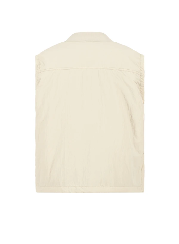 Die hellbeige Mikrofaser-Weste zeigt sich mit einer verdeckten Druckknopfleiste und seitlichen Reißverschlusstaschen als durchdachter Begleiter. Das recycelte Polyamid fühlt sich federleicht an und bietet dank der dezenten Wattierung genau die richtige Wärme für wechselhafte Tage. Der sportive Collegekragen aus Rippenstrick und die seitlichen Schlitze mit Druckknöpfen unterstreichen den lässigen Charakter für Stadt und Freizeit. Die 71 cm Rückenlänge bei Größe 50 sorgt für eine moderne, nicht zu lange Silhouette.