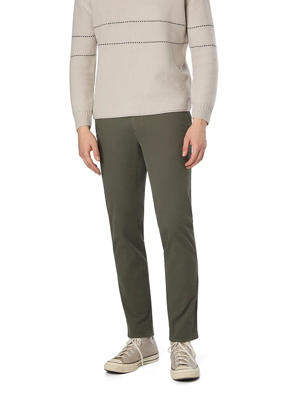 Unser Tipp: Kombinieren Sie die olivgrüne Chino mit einem cremefarbenen Strickpullover und braunen Lederschuhen für einen stilvollen Herbst-Look.