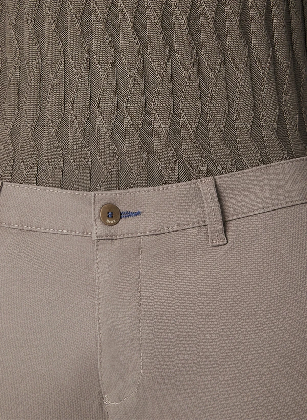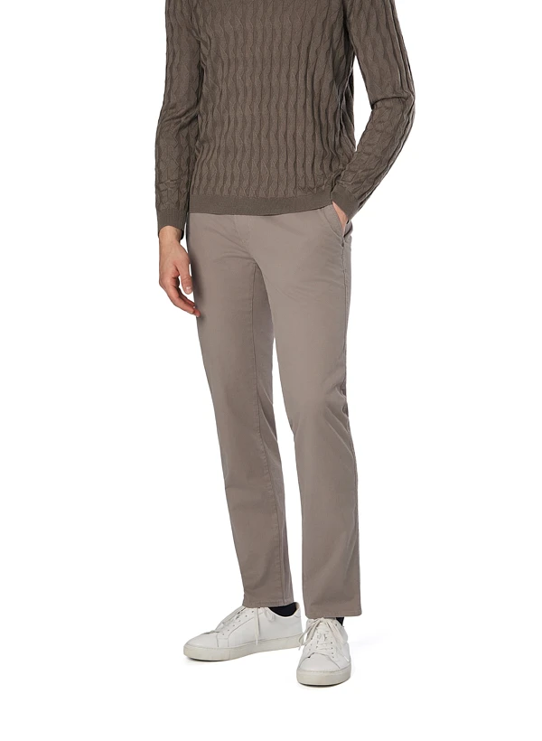 Die warme Taupe-Nuance dieser Chino zeigt sich in einer feinen, lebendigen Webstruktur, die dem Stoff eine dezente Tiefe verleiht. Der hochwertige Baumwoll-Stretch schmiegt sich angenehm an und bietet durch den Elasthan-Anteil volle Bewegungsfreiheit für den ganzen Tag. Mit ihrem Regular Fit und den klassischen Chino-Details wie seitlichen Eingrifftaschen und geknöpften Paspeltaschen am Gesäß passt sie mühelos zu Business-Casual wie zu entspannten Freizeitlooks. Die nachhaltige Blue Planet Qualität unterstreicht den verantwortungsvollen Ansatz bei Material und Produktion.