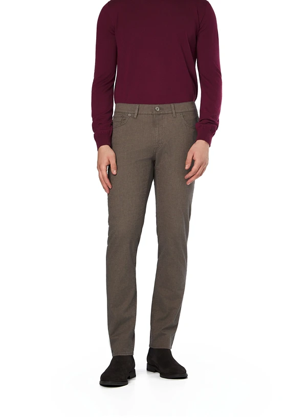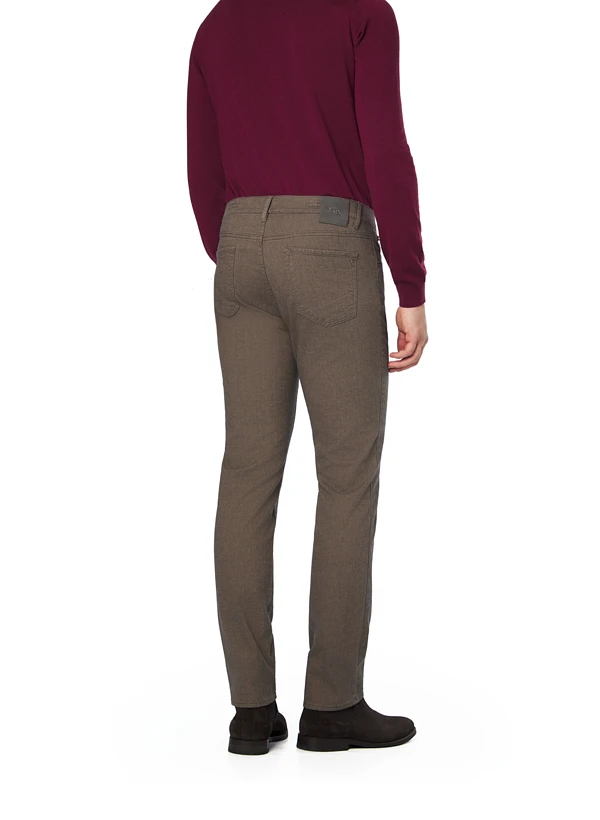 Die warme, nussbraune Färbung dieser Five-Pocket-Hose zeigt sich in einer raffinierten Twotone-Optik, die je nach Lichteinfall subtil changiert. Der hochwertige Baumwollmix mit 3% Elasthan-Anteil sorgt für angenehme Bewegungsfreiheit und behält dabei seine Form – den ganzen Tag über. Mit geradem Beinverlauf und Modern Fit sitzt die Hose entspannt ohne aufzutragen, ideal für Büro und Freizeit gleichermaßen. Die klassischen Five-Pocket-Details und die saubere Verarbeitung unterstreichen den zeitlosen Charakter.