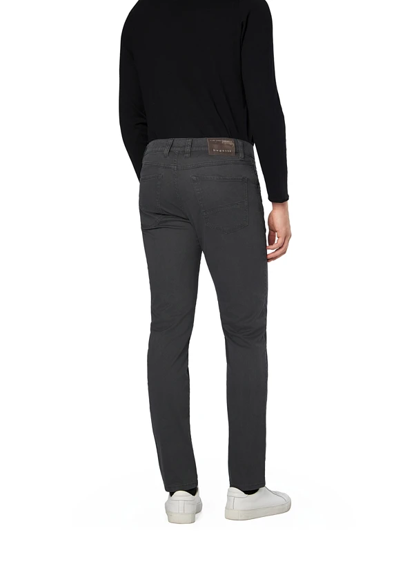 Die dunkelgraue Melierung dieser Five-Pocket-Hose wirkt durch ihren subtilen Schattenverlauf besonders edel und vielseitig. Der hochelastische Baumwoll-Stretch mit T400-Faser schmiegt sich angenehm an und behält dauerhaft seine Form – die samtige Peach-Oberfläche fühlt sich dabei außergewöhnlich weich an. Im modernen Büro oder beim Stadtbummel macht die Hose durch ihren cleanen Schnitt und die perfekte Passform eine ausgezeichnete Figur. Die klassischen Five-Pocket-Details und die schmal zulaufende Fußweite von 34 cm unterstreichen den zeitgemäßen Look.