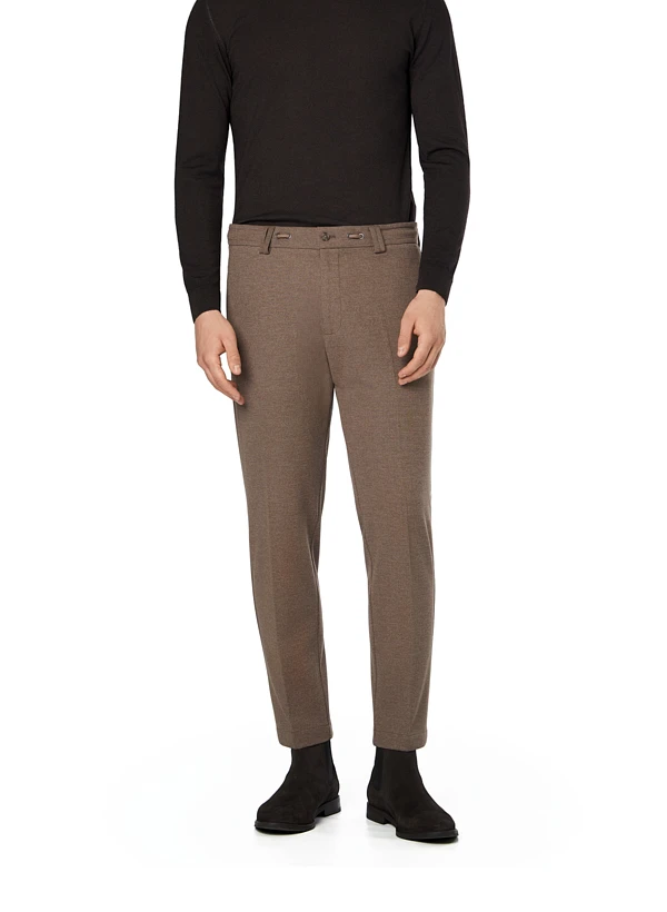 Das dunkelbraune Melange-Muster verleiht dieser Jersey-Hose eine dezente Tiefe, während die weitenregulierbare Kordel für individuellen Tragekomfort sorgt. Der Materialmix aus Polyester, Baumwolle und Elasthan fühlt sich geschmeidig an und bietet gleichzeitig die nötige Bewegungsfreiheit für den Alltag. Die klassische Ausstattung mit seitlichen Einschubtaschen und Gesäßtaschen macht sie zum vielseitigen Begleiter zwischen Büro und Freizeit. Die halbgefütterte Verarbeitung unterstreicht die durchdachte Qualität.