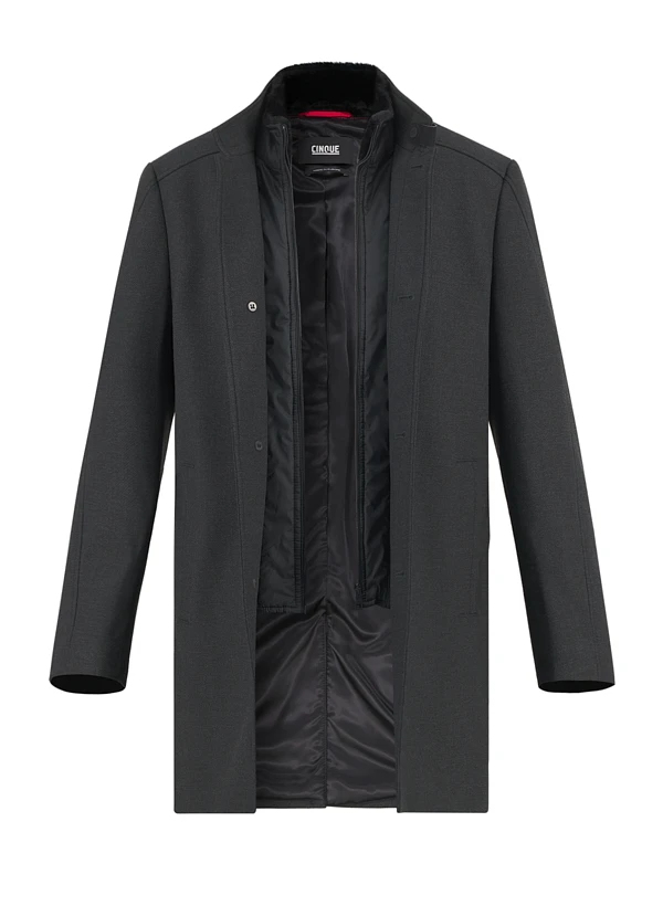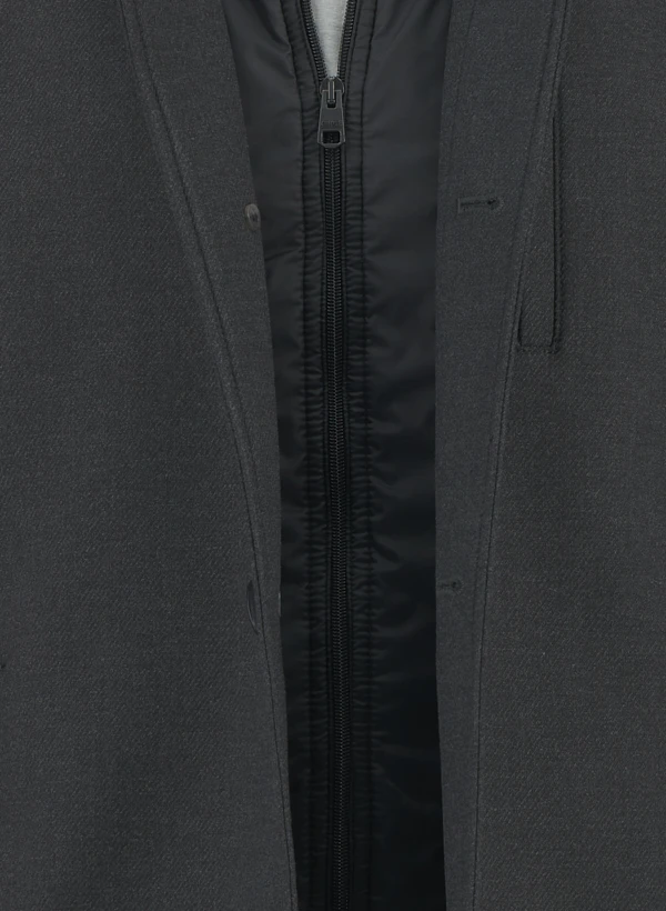 Anthrazitgrauer Wollmantel mit abnehmbarem Steppeinsatz