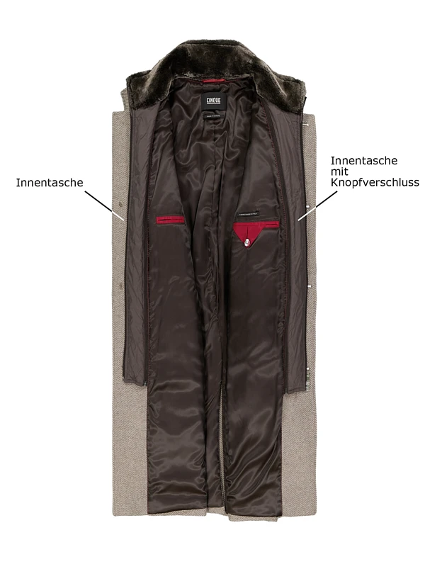 CINQUE verbindet seit 1984 italienische Lässigkeit mit deutscher Präzision – ein Ansatz, der sich in der durchdachten Konstruktion dieses Mantels widerspiegelt. Die kalte Jahreszeit verlangt nach flexiblen Lösungen: Morgens mit wärmendem Steppeinsatz ins Büro, abends ohne Einsatz ins Restaurant.