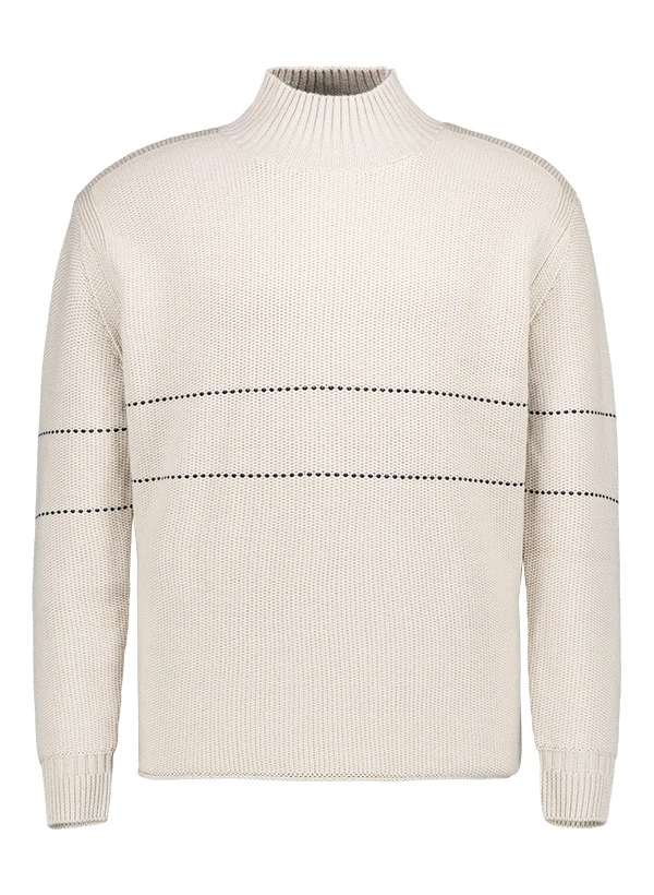 Der warme Sandton und das feine Perlstrickmuster verleihen diesem Pullover eine dezente Textur mit elegantem Understatement. Die hochwertige Wollmischung wärmt zuverlässig und fühlt sich dabei weich und kratzfrei auf der Haut an. Mit seinem markanten Stehkragen in Rippenstrick und der Rollkante am Saum wirkt er modern und zugleich zeitlos – ideal für Business-Casual-Looks oder entspannte Stadtmomente. Die neutrale Farbgebung macht ihn zum vielseitigen Begleiter, während die strukturierte Oberfläche für visuelle Tiefe sorgt.