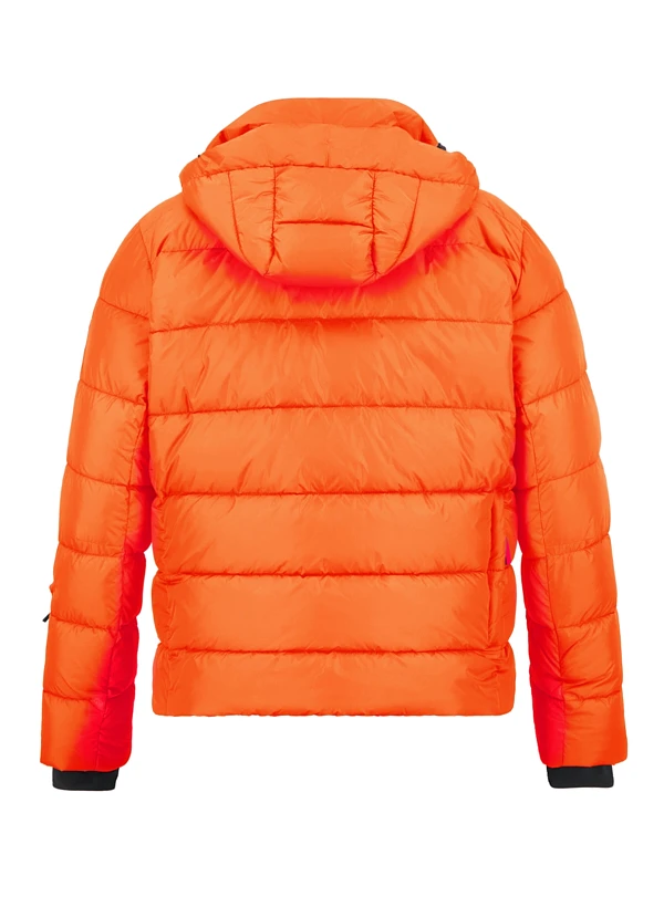 Die kraftvolle Neonfarbe macht diese Skijacke zum unübersehbaren Statement und sorgt für Sicherheit bei schlechten Sichtverhältnissen. Das recycelte Thermore®-Futter speichert Körperwärme effizient, während die wasserabweisende Polyester-Außenschicht vor Nässe schützt. Mit durchdachten Details wie Skipasstasche, abnehmbarer Kapuze und Zwei-Wege-Reißverschluss begleitet sie ambitionierte Skifahrer durch lange Tage am Berg. Die verstellbaren Ärmelbündchen mit Daumenschlaufen halten den Schnee draußen, während der hohe Stehkragen mit Kinnschutz vor eisigem Wind bewahrt.