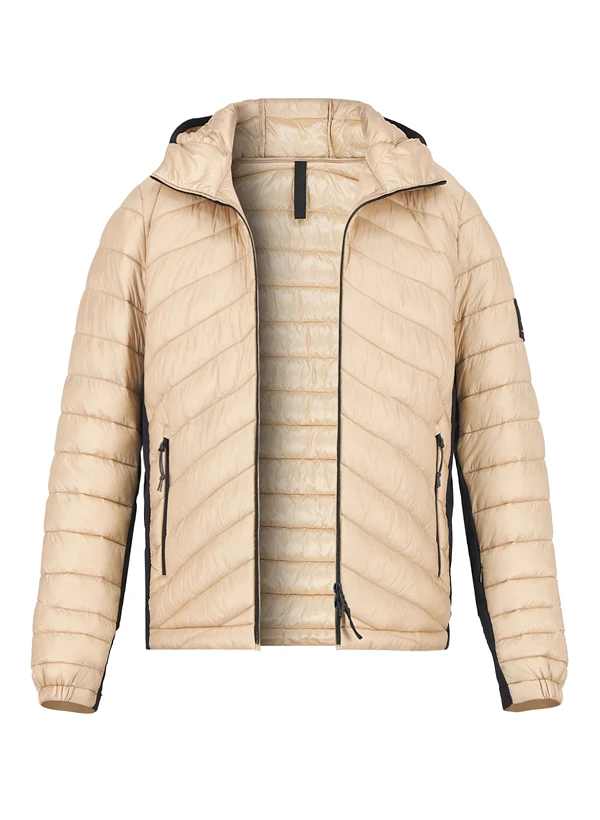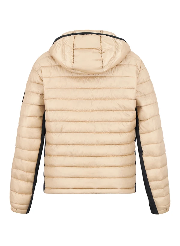 Die seitlichen Stretcheinsätze aus Kontrastmaterial verleihen dieser beigen Steppjacke eine dynamische Silhouette und optimale Bewegungsfreiheit. Das atmungsaktive Nylon mit Thermore-Wattierung hält warm, ohne aufzutragen – ideal für aktive Tage in der Übergangszeit. Der Zwei-Wege-Reißverschluss und die regulierbare Saumweite ermöglichen flexible Tragevarianten für Sport und Stadt. Die integrierten Reißverschlusstaschen und elastischen Ärmelbündchen unterstreichen den durchdachten Funktionscharakter.