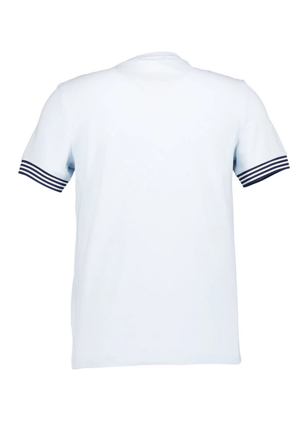 Die elastischen Ärmelbündchen im Streifendessin setzen sportive Akzente und verleihen diesem eisblauen T-Shirt den typischen Fred Perry Touch. Das reine Baumwoll-Piqué fühlt sich luftig an und transportiert Feuchtigkeit zuverlässig nach außen – ideal für warme Tage. Mit seinem cleanen Rundausschnitt und der geraden Passform wirkt es sowohl solo als auch unter einem offenen Hemd lässig und stilvoll. Das verstärkende Band im Nacken sorgt für Formstabilität und langlebigen Tragekomfort.