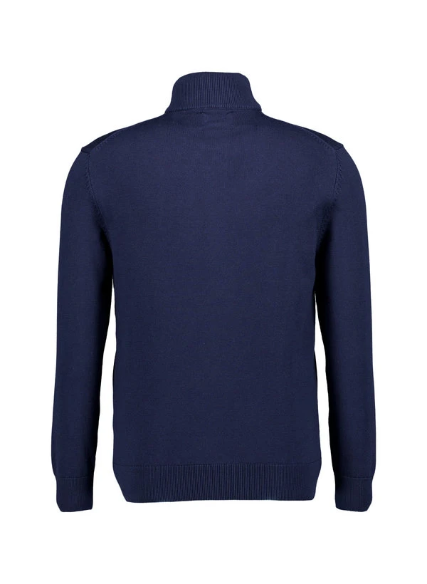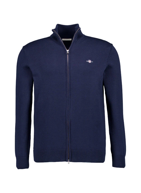 Der markante Stehkragen und der praktische Zwei-Wege-Reißverschluss machen diesen dunkelblauen Cardigan zu einem vielseitigen Begleiter. Die reine Baumwolle fühlt sich natürlich weich an und reguliert die Körpertemperatur optimal – ideal für wechselhafte Übergangstage. Als elegante Alternative zur Strickjacke passt er sowohl ins Büro als auch zu entspannten Freizeitlooks. Die klassische Passform mit einer Rückenlänge von etwa 70 cm bei Größe M bietet angenehme Bewegungsfreiheit.