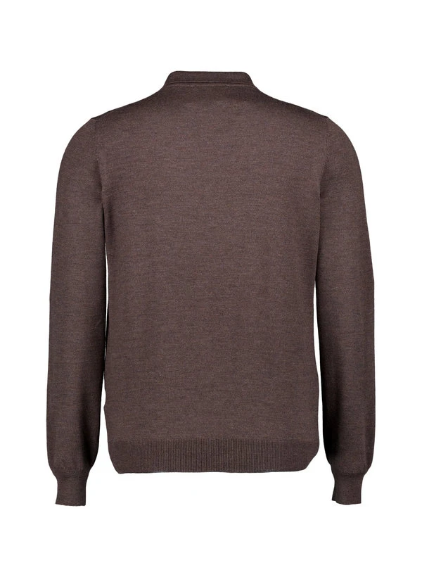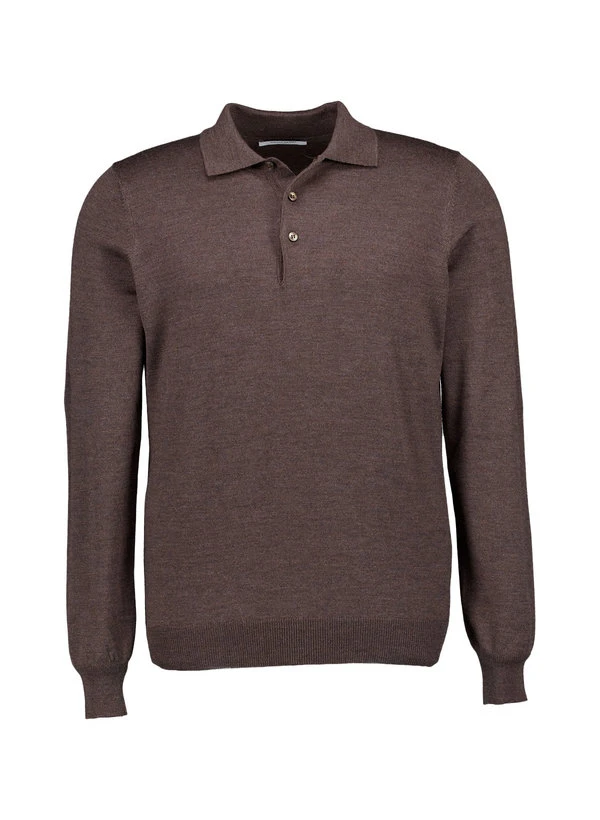 Der satte Dunkelbraunton verleiht diesem Feinstrickpullover zeitlose Eleganz und maskuline Präsenz. Die extrafeine Merinowolle fühlt sich butterweich an und reguliert die Körpertemperatur optimal – wärmt bei Kälte, kühlt bei Wärme. Der schmal geschnittene Polokragen mit Knopfleiste macht den Pullover bürotauglich und zugleich lässig genug für entspannte Abende. Rippenstrickdetails an Kragen, Ärmeln und Saum sorgen für perfekten Sitz und betonen die handwerkliche Qualität.