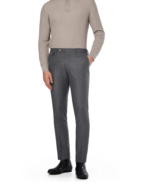 Das grau melierte Flanellgewebe zeigt sich in klassischer Eleganz mit Bügelfalte und verlängertem Bund für perfekten Sitz. Der luxuriöse Schurwoll-Mix mit Kaschmiranteil fühlt sich weich an und reguliert die Temperatur natürlich – ideal für lange Bürotage. Die Hose verkörpert britische Schneiderkunst für den modernen Business-Alltag. Münztasche mit Patte und geknöpfte Gesäßtaschen runden das durchdachte Design ab.
