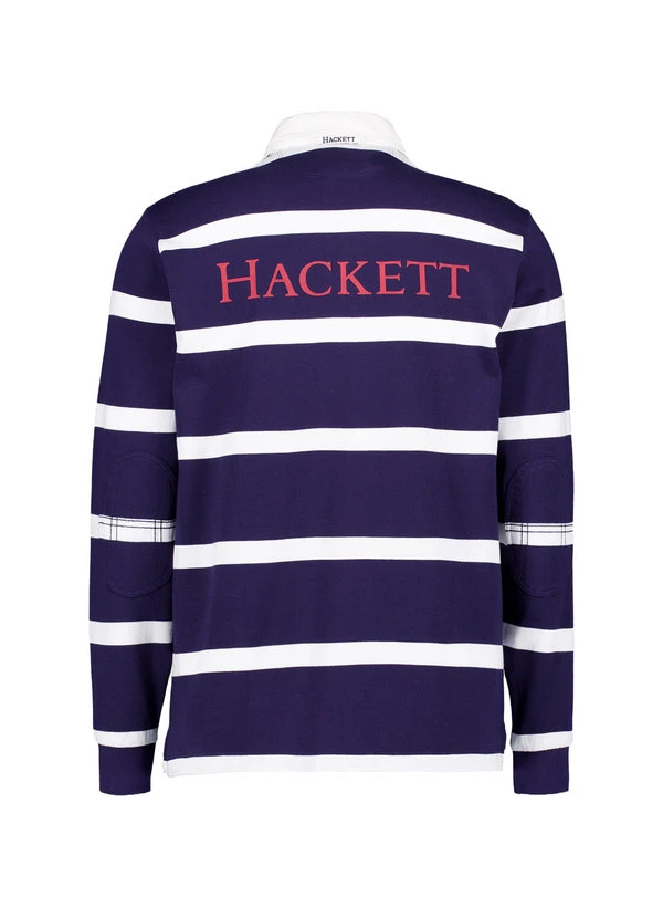 Die markanten Querstreifen in Tintenblau und Weiß verleihen diesem Rugby-Shirt zeitlose Sportlichkeit mit britischem Heritage-Charakter. Die reine Baumwolle fühlt sich weich an und bietet hohen Tragekomfort – robust genug für den Alltag, dabei atmungsaktiv und pflegeleicht. Der Kentkragen mit verdeckter Knopfleiste und die verstärkten Ellbogenpartien verbinden Stil mit durchdachter Funktion. Seitliche Schlitze sorgen für Bewegungsfreiheit, während das dezente Logo auf der Rückseite die Markenherkunft subtil unterstreicht.