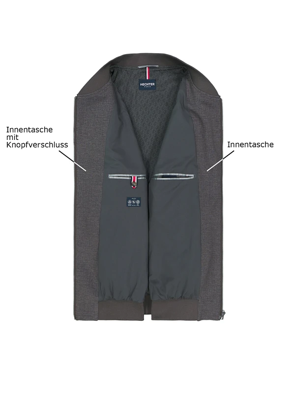 Das warme Braun dieser Mikrofaser-Jacke wird durch Rippenstrick-Details an Kragen, Ärmeln und Saum sportiv akzentuiert. Die hochwertige Materialmischung aus Polyester, Viskose und Polyamid mit Elasthan-Anteil bietet optimale Bewegungsfreiheit und bleibt dabei formstabil. Der durchgehende Reißverschluss und die seitlichen Leistentaschen machen den Blouson zum vielseitigen Begleiter für urbane Herbsttage. Das recycelte Polyester-Futter unterstreicht den nachhaltigen H-ECO Anspruch.