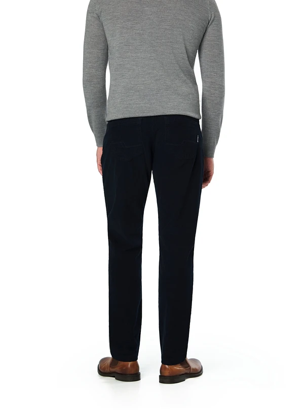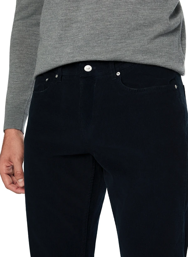 Nachtblauer Feincord mit konischem Beinverlauf
