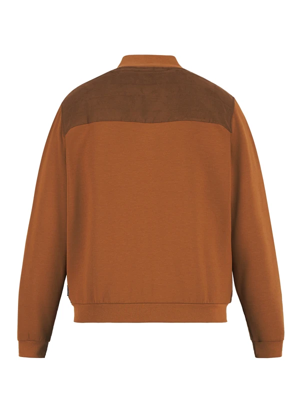 Die braune Hybridjacke kombiniert ein wattiertes Vorderteil mit elastischen Partien an Rücken und Ärmeln für maximale Bewegungsfreiheit. Der Materialmix aus Polyester, Baumwolle, Modal und Elasthan fühlt sich angenehm weich an und reguliert die Körpertemperatur optimal. Die durchdachte Konstruktion macht sie zum idealen Begleiter für aktive Tage zwischen drinnen und draußen. Praktische Leistentaschen mit Druckknopf und der Zwei-Wege-Reißverschluss unterstreichen die funktionale Ausrichtung.