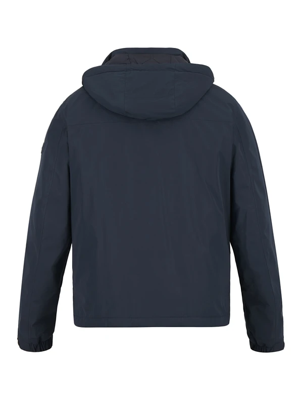 Die nachtblaue Färbung verleiht dieser funktionalen Jacke urbane Eleganz, während die abnehmbare Kapuze mit Gummizug für variable Tragemöglichkeiten sorgt. Das atmungsaktive Mikrofaser-Material schützt zuverlässig vor Wind und Regen, ohne dabei die Bewegungsfreiheit einzuschränken. Die durchdachte Ausstattung mit seitlichen Reißverschlusstaschen und regulierbarem Saum macht sie zum idealen Begleiter für wechselhafte Herbsttage. Praktische Details wie der Klettverschluss am Ärmelabschluss und die schützende Druckknopfblende über dem Reißverschluss unterstreichen die funktionale Ausrichtung.