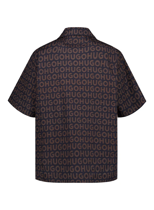 Das markante Monogram-Print in Schwarz-Braun verleiht diesem Kurzarmhemd urbane Präsenz mit subtiler Eleganz. Die reine Baumwolle fühlt sich luftig an und bietet gerade an warmen Tagen hohen Tragekomfort. Mit seiner bewusst weiten Oversized-Passform und der italienischen Knopfleiste wirkt das Hemd lässig-progressiv. Das kurze Revers und die präzise Verarbeitung unterstreichen den avantgardistischen Ansatz.