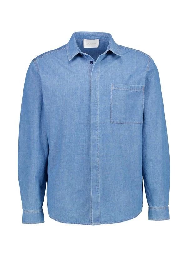 Die verdeckte Knopfleiste verleiht diesem blauen Jeanshemd eine moderne, puristische Optik ohne sichtbare Knöpfe. Die reine Baumwolle fühlt sich angenehm weich an und entwickelt mit jedem Tragen ihren charakteristischen, lässigen Griff. Mit seinem cleanen Design funktioniert das Hemd sowohl zur Chino im Büro als auch zur Jogginghose am Wochenende. Der klassische Kentkragen und die einzelne Brusttasche unterstreichen die reduzierte Eleganz, während die Sportmanschetten für einen entspannten Abschluss sorgen.