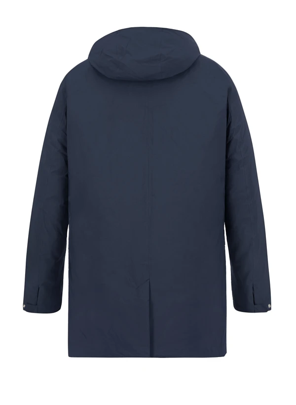 Die blau-grüne Farbgebung verleiht diesem technischen Parka eine moderne Note, die sich vom üblichen Schwarz und Navy abhebt. Das recycelte Polyester-Obermaterial ist wasserabweisend beschichtet und schützt zuverlässig vor Wind und Nässe, während die hochwertige 80/20 Daunenfüllung für optimale Wärmeisolierung sorgt. Mit seiner großzügigen Rückenlänge von 90 cm und dem durchdachten Zwei-Wege-Reißverschluss plus Druckknopfleiste bietet er urbanen Komfort für kalte Tage. Praktische Details wie die verdeckten Seitentaschen, Brusttaschen und der weitenregulierbare Saum machen ihn zum vielseitigen Begleiter.