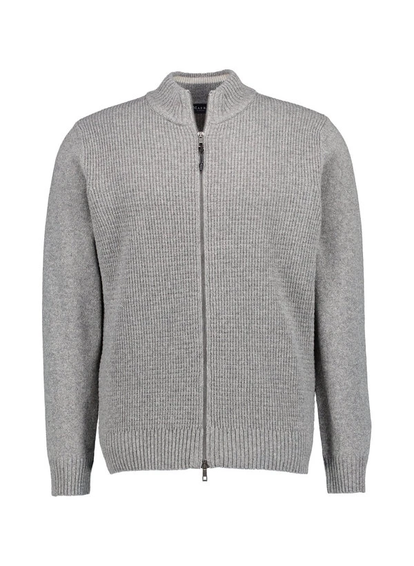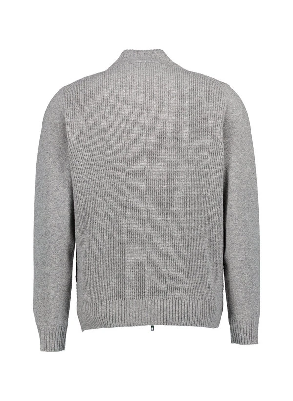Der markante Stehkragen und der hochwertige Zwei-Wege-Reißverschluss verleihen diesem grauen Cardigan eine moderne, cleane Optik. Die reine Merinowolle wärmt zuverlässig, bleibt dabei atmungsaktiv und fühlt sich angenehm weich auf der Haut an. Für Business-Casual-Looks oder entspannte Wochenenden bietet er die perfekte Balance zwischen Eleganz und Komfort. Praktische Seitentaschen und komfortable Rippenbündchen runden das durchdachte Design ab.