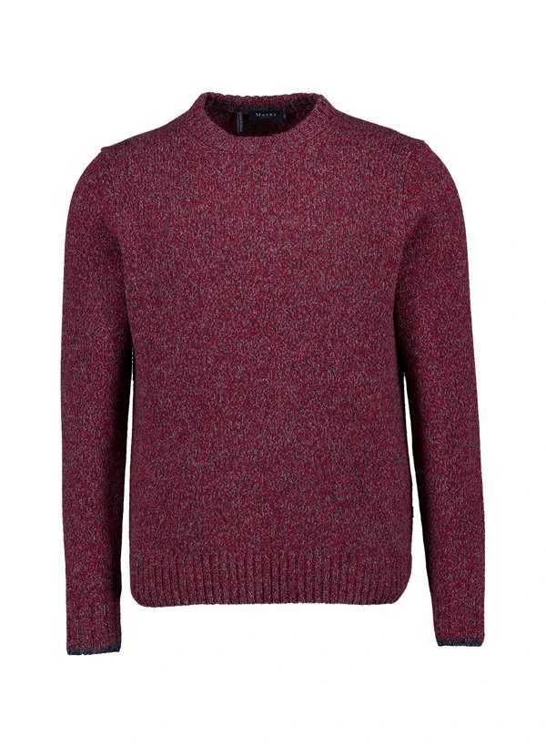 Rot melierter Merino-Pullover mit klassischem Rundhals