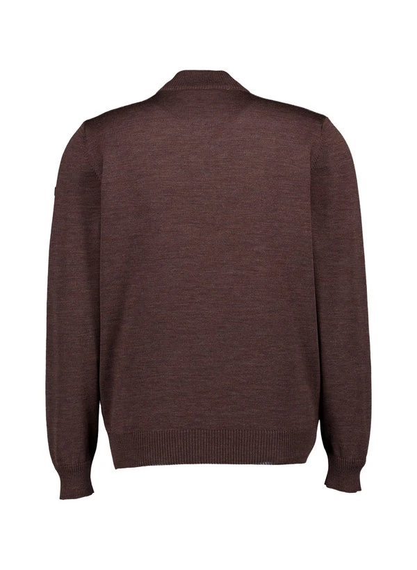 Ein sattes, erdiges Braun verleiht diesem Troyer zeitlose Eleganz und natürliche Wärme. Die reine Merinowolle fühlt sich weich auf der Haut an, reguliert die Temperatur optimal und bleibt dabei atmungsaktiv. Der kurze Zipper am Stehkragen ermöglicht flexible Stylings – vom sportlich-lässigen bis zum gepflegt-urbanen Look. Rippenstrickdetails an Kragen, Ärmeln und Saum sorgen für perfekten Sitz und unterstreichen die hochwertige Verarbeitung.