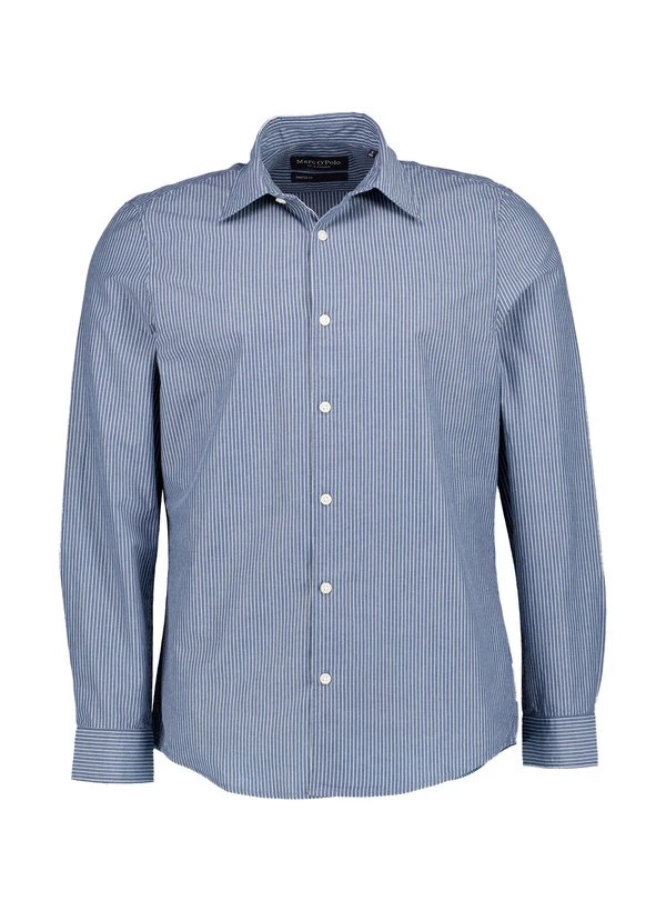 Die klaren blau-weißen Streifen verleihen diesem Hemd eine zeitlose Frische, die vom Büro bis zum Wochenende funktioniert. Die reine Bio-Baumwolle fühlt sich weich an und reguliert das Körperklima natürlich – ideal für lange Tage. Mit seinem Shaped Fit sitzt es körpernah ohne einzuengen und betont eine moderne Silhouette. Die italienische Knopfleiste und weitenverstellbare Sportmanschetten zeigen die durchdachten Details.