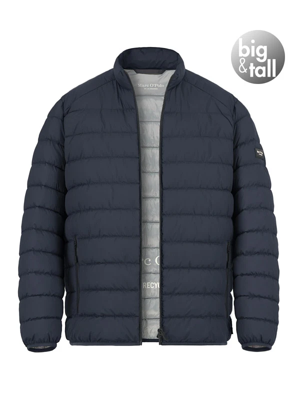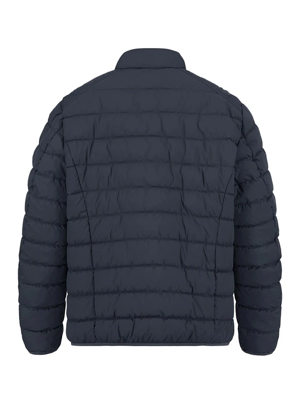 Die dunkelblaue Steppjacke zeigt sich mit wasserdichten Zippern an den Seitentaschen und einem praktischen Zwei-Wege-Reißverschluss für flexible Tragemöglichkeiten. Das recycelte Polyester fühlt sich leicht an, während die Wattierung zuverlässig vor Wind und Kälte schützt. Mit Stehkragen und elastischen Abschlüssen an Ärmeln und Saum sitzt die Jacke bequem und hält die Wärme dort, wo sie gebraucht wird. Die wasserabweisende Mikrofaser macht sie zum idealen Begleiter für wechselhaftes Herbstwetter.