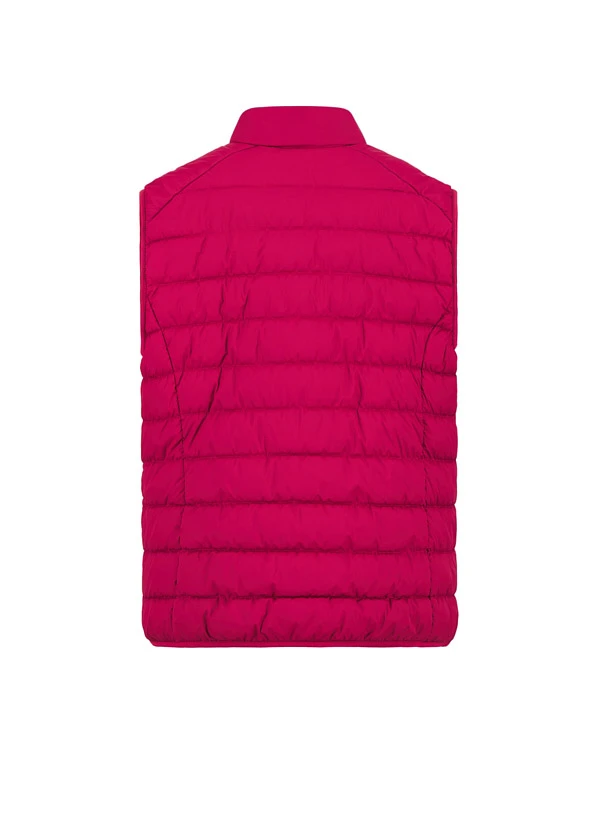 Das satte Karmesinrot dieser Steppweste setzt einen kraftvollen Akzent, während die cleane Steppung für moderne Struktur sorgt. Das recycelte Polyester fühlt sich leicht an und bietet durch die wattierte Füllung angenehme Wärme ohne aufzutragen. Die wasserfesten Reißverschlüsse an den Seitentaschen schützen Wertsachen bei wechselhaftem Wetter – ideal für urbane Herbsttage. Der Stehkragen und die elastischen Einfassungen an Armausschnitten und Saum sorgen für windgeschützten Tragekomfort.