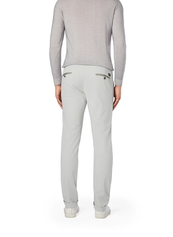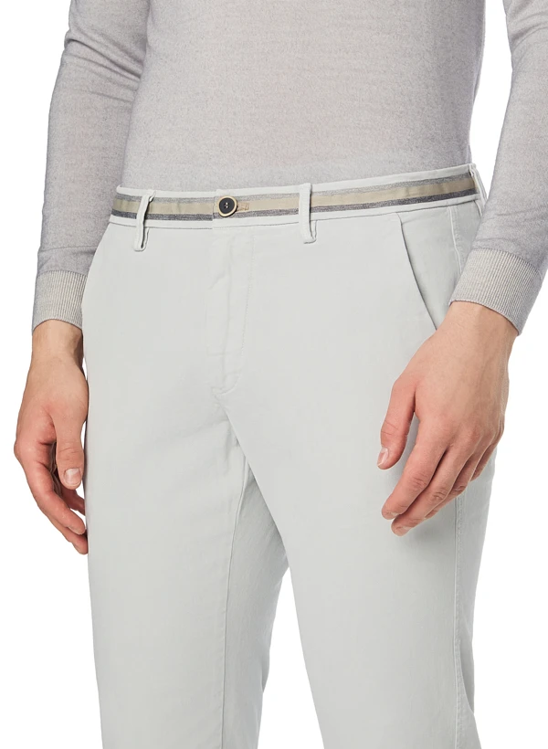 Hellgraue Chino mit kontrastfarbenem Zierband