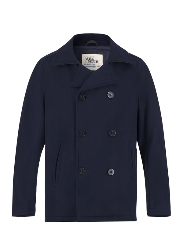 Marineblaue Caban-Jacke mit klassischem Doppelreiher