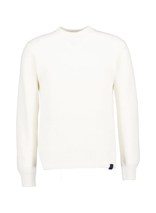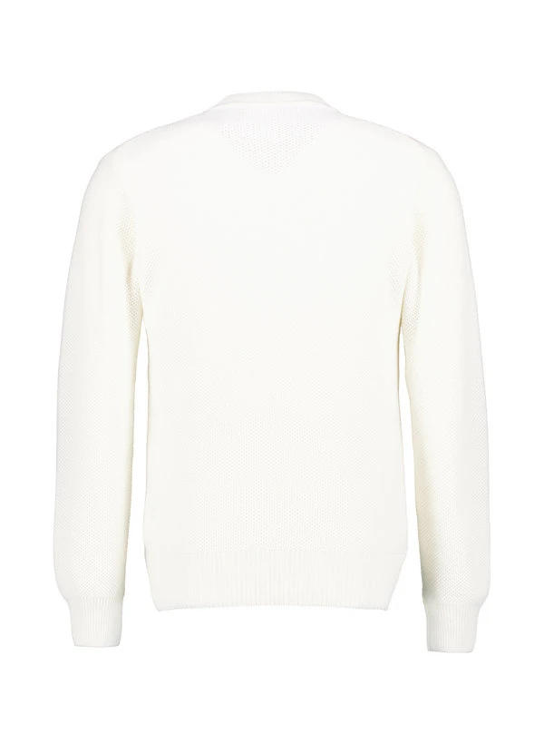 Das markante Wabenmuster verleiht diesem Pullover eine dreidimensionale Textur, die sich elegant von der cremigen Ecru-Basis abhebt. Der hochwertige Materialmix aus Wolle, Viskose und einem Hauch Kaschmir fühlt sich weich an und reguliert die Körpertemperatur optimal. Für urbane Herbsttage oder entspannte Business-Casual-Anlässe bietet er die perfekte Balance aus Komfort und Stil. Die präzise gearbeiteten Rippenstrickbündchen an Ausschnitt, Ärmeln und Saum sorgen für eine saubere Silhouette.